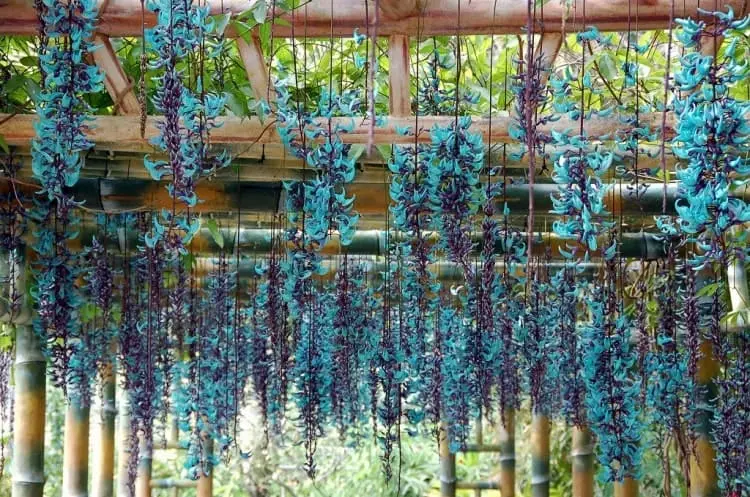 Cây nho đồng hồ Bengal có hoa màu xanh hình chiếc kèn xinh xắn mọc thành từng chùm dài, tán lá rậm rạp và mọc lâu năm. Loài thực vật bản địa của Ấn Độ này còn được gọi là kèn Bengal hoặc hoa bầu trời xanh, có thân giống như dây thừng chỉ xoắn theo chiều kim đồng hồ, khiến nó có cái tên khác thường.