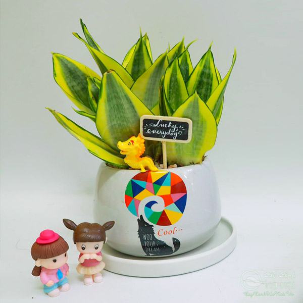 Cây lưỡi hổ trồng chậu sứ đẹp