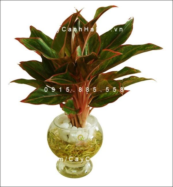 Một chậu cây trầu bà đế vương để bàn là cây được trồng từ cây con khoảng từ 5 đến 6 tháng; có chiều cao thân trung bình khoảng 40 cm> Cây thích hợp để trưng bày trên bàn làm việc hay các giá, kệ. Mỗi cây trầu bà đế vương như vậy có khoảng 8 lá.