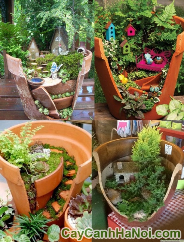 Nếu bạn có một chậu lớn bị bể một góc, bạn có thể tạo một khu vườn như cổ tích trong chậu bể. Một khu vườn cổ tích sẽ rất dễ thực hiện và làm đẹp cho khu vườn lớn. Mời mọi người tìm hiểu thêm về cách tạo khu vườn cổ tích tại bài viết : Hướng dẫn cách làm khu vườn cổ tích từ chậu hoa bể